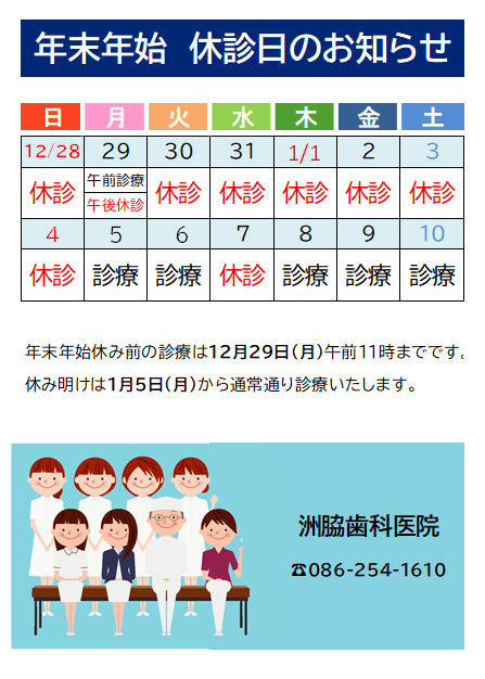 | 診療曜日 | 月 | 火 | 水 | 木 | 金 | 土 | 日祝 | |